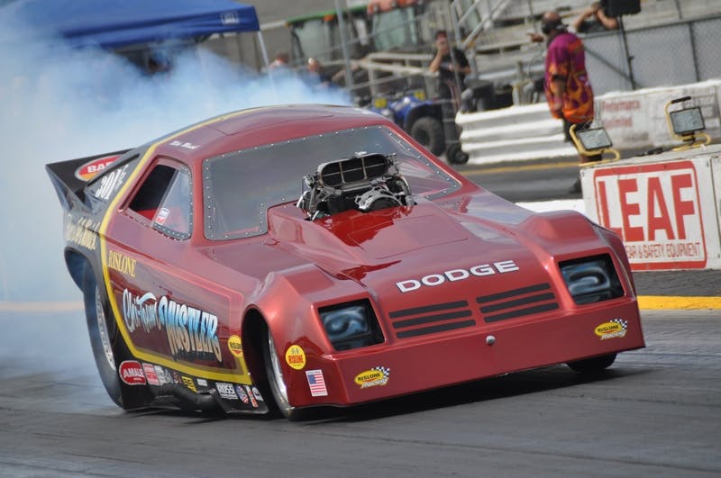 Peter Gallen won for the seventh time in 2013 in AMSOIL Prostalgia Nitro Funny Car, sweeping a Nitro Jam weekend for the fourth fifth time in his career as he held off Mike Minick and the “Chi-Town Hustler” team. Minick had low elapsed time of the weekend entering Sunday’s final, but in the money round Minick went -.201 red and Gallen powered to a 5.778, 248.29 in the “Poverty Stricken” ’77 Monza in picking up the win and setting the bench mark for the weekend.