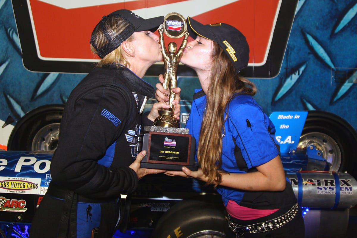 Elaine Larsen defeated Marisha Falk (fouled), 5.905 sec./273.88 mph to no time.
