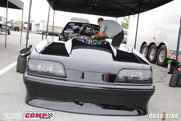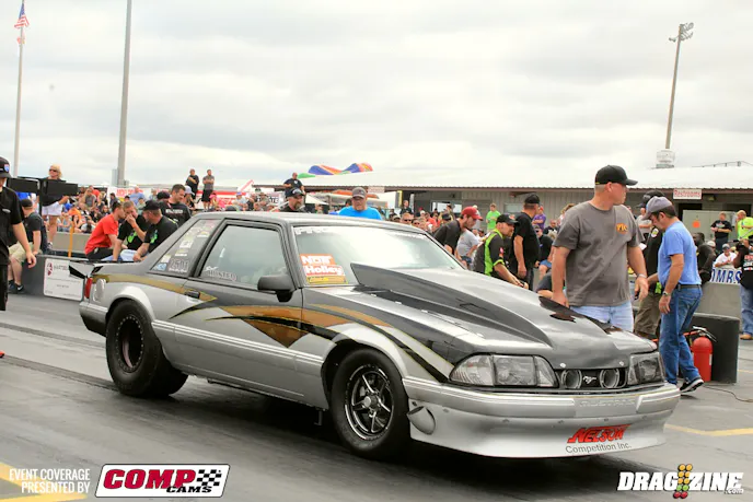 Nitrous X Racer Scott Vestal hails from Bristol, TN running an 89 Mustang with 464 cubic inches under the hood. The car left hard scoring a 4.84 at 143 MPH.