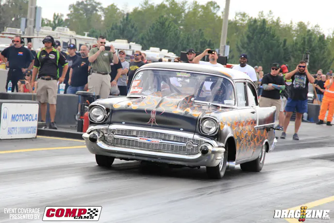Kyle Kirker drives this gorgeous 55 Chevy in X275 though is currently sitting outside the field with a 5.52 at 128.