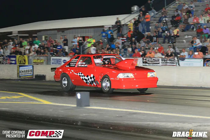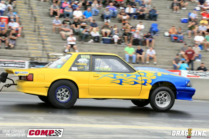 Kit Luong hails from Broken Arrow, Oklahoma running his 1989 Mustang. He sits fifth with a 4,62 at 154 MPH.