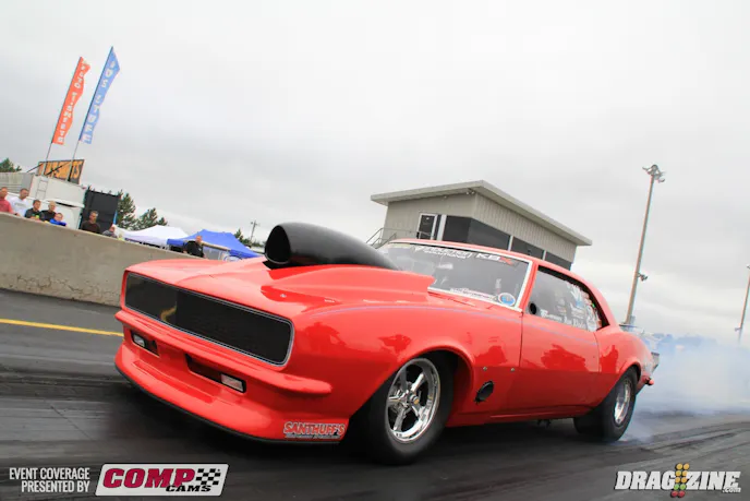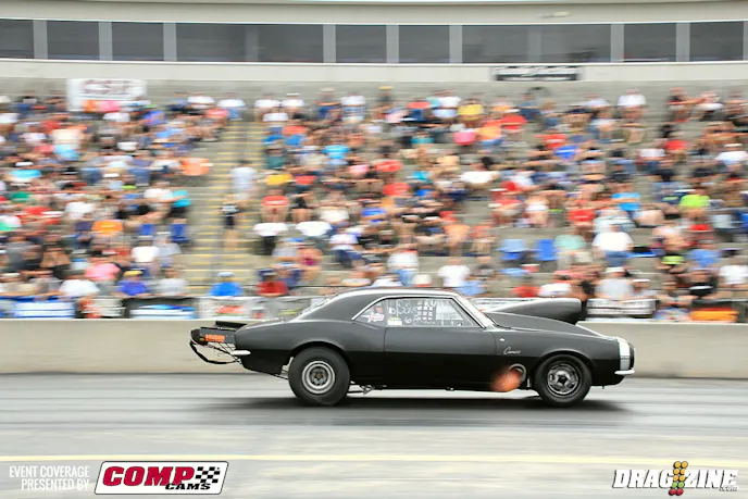 Bryan Marrow was the number two qualifier with his Procharged big block Camaro and faced Steve Wardlow's Yenko style Nova in the other pair of semifinalists. Wardlow did his job on the tree with a .004 reaction  and put up a respectable 5.046 at 141 it just wasn't enough to hold off Marrow's hard charging 4.908 at 149 MPH Camaro.