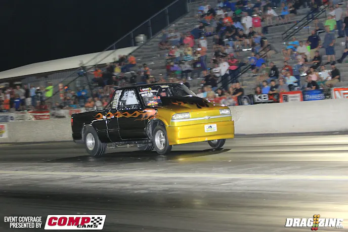 The class made it to the semis before running up against the midnight curfew with Wright getting around Ditto with a 4.94 at 142 who fell off pace to a 5.18 after earning lane choice in round three with a 4.62 at 152 over Alan Gaulden. Pirez had the earned single running a 6.67 at 101 with Wright and Pirez splitting the win.