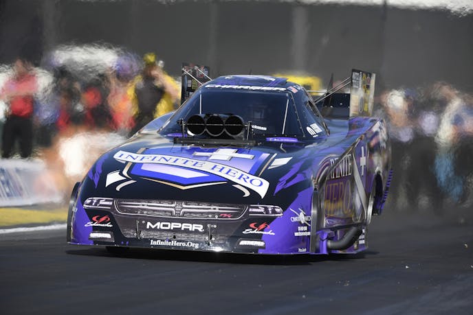 Funny Car — 1. Jack Beckman, Dodge Charger, 3.860, 332.84; 2. Matt Hagan, Charger, 3.877, 329.99; 3. Ron Capps, Charger, 3.882, 331.12; 4. Robert Hight, Chevy Camaro, 3.889, 332.59; 5. Cruz Pedregon, Toyota Camry, 3.924, 326.48; 6. Tommy Johnson Jr., Charger, 3.932, 320.36; 7. Del Worsham, Camry, 3.943, 320.97; 8. Courtney Force, Camaro, 3.948, 328.94; 9. Shawn Langdon, Camry, 3.949, 328.06; 10. J.R. Todd, Camry, 3.953, 322.04; 11. Jonnie Lindberg, Camry, 3.954, 322.58; 12. Bob Tasca III, Ford Mustang, 3.984, 322.50; 13. Tim Wilkerson, Mustang, 4.046, 310.27; 14. Jeff Diehl, Camry, 4.059, 313.58; 15. Jim Campbell, Charger, 4.130, 307.16; 16. John Force, Camaro, 4.139, 265.38. Not Qualified: 17. Richard Townsend, 4.242, 258.91; 18. Bob Bode, 4.828, 167.91; 19. Brandon Welch, 7.210, 66.45.