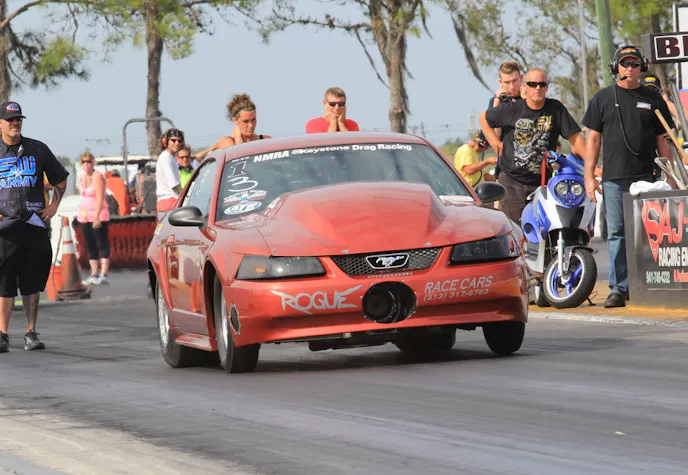 Cool spring conditions and an always-fast racing surface at the Maryland International Raceway set the stage for big performances during the NMRA’s annual visit over the weekend, and the Mustang and Ford contingent didn’t disappoint, as fans witnessed not only the first six-second pass in Street Outlaw history, but also the first seven-second run ever in Renegade. At the close of the weekend, it was one of those barrier-busters, Renegade’s Bart Tobener, that parlayed the big numbers into a victory, as he downed Johnny Lightning in the final with a stellar 8.02. In Street Outlaw, Phil Hines outlasted the six-second guns of Dwayne Barbaree and John Urist, ousting the many-time champion in the final by a 7.10 to 7.17 count. In the new Coyote Modified class, Terry “Beefcake” Reeves drove his 2011 Mustang past No. 1 qualifier Frank Verala for the win, and Joe Marini used a big holeshot advantage to squeak out a win in Coyote Stock over the much-quicker Darin Hendricks, 10.64 to a 10.56.