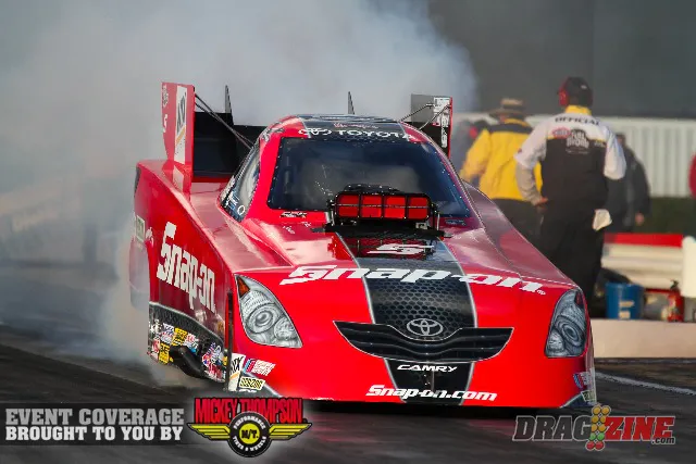 No one bettered Pedregon’s powerful track record performance of 4.095 at 307.51 in his Snap-on Tools Toyota Camry Solara, and the two-time Funny Car world champion claimed his third No. 1 qualifying position of the season, 42nd of his career and his first ever at the mile-high Denver dragstrip. Pedregon will race Jeff Diehl in the first round.