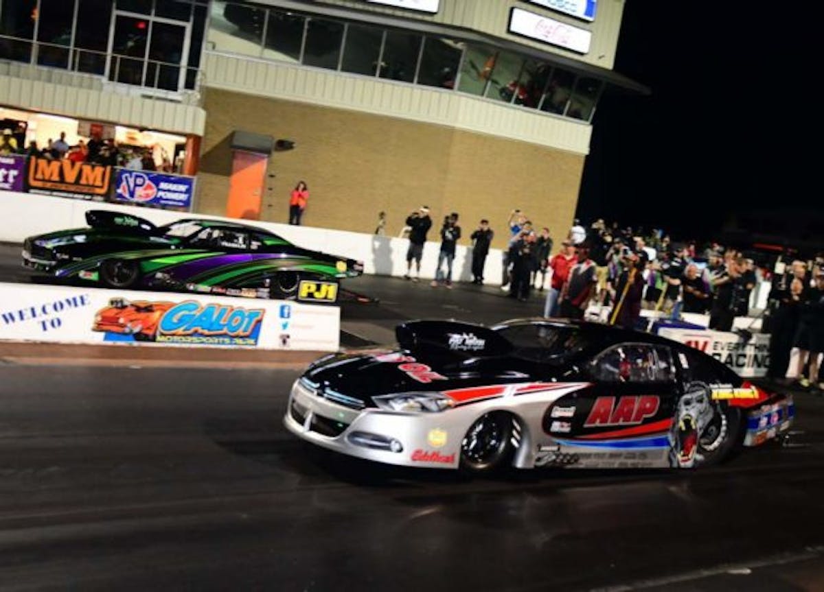 The Pro Nitrous final round was bound to be one of the quickest and fastest side-by-side runs in class history, as the semifinals saw Tommy Franklin reset the elapsed-time record with his 3.658 and Lizzy Musi demolish the speed record with a 206.54. While Franklin encountered trouble in the final and ran a 3.741 at 195.99, Musi bettered the et record with a 3.656 at 206.42 in the Frank Brandao-owned AAP/Lucas Oil ’15 Dodge Dart.
