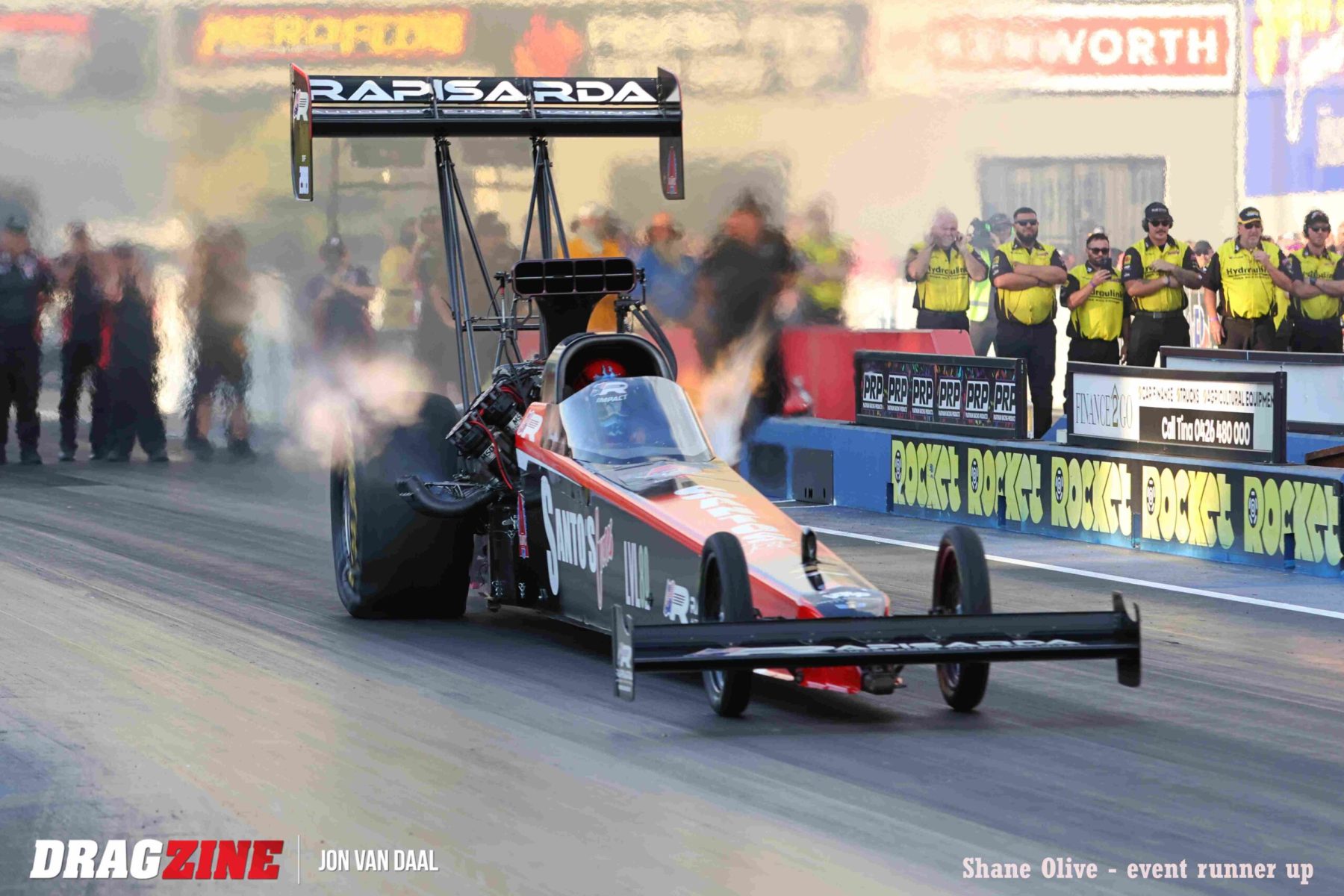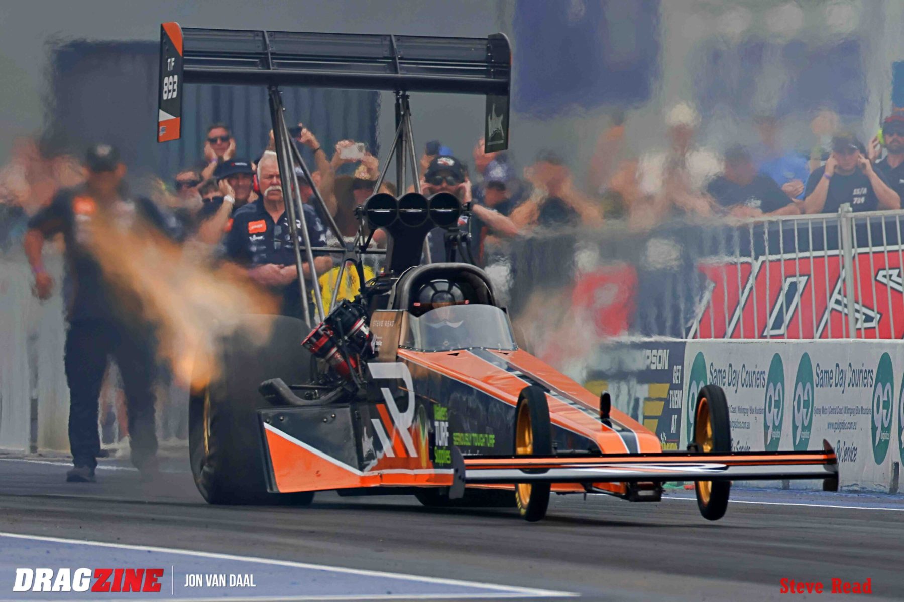 Backing up the Nitro show were 110 hand-picked sportsman racers from all over Australia. When all was said and done, victories went to Mitchell Oxley in Super Comp, over runner-up Kit Hunter. Wally Hosta won in Performance Bike, over runner-up Ken Collin. Cory Dyson took the gold in Modified from runner-up Jess Turner. Super Sedan had Michael Vlasakakis snatch victory over runner-up Sean Maher. In Super Street, Tex Griffiths turned back runner-up Richard Matosevic, while Sean Rickets rode to a win in Modified Bike over runner-up Mitchell Woodford.