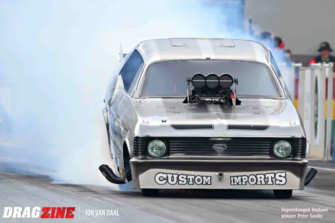 Backing up the Nitro show were 110 hand-picked sportsman racers from all over Australia. When all was said and done, victories went to Mitchell Oxley in Super Comp, over runner-up Kit Hunter. Wally Hosta won in Performance Bike, over runner-up Ken Collin. Cory Dyson took the gold in Modified from runner-up Jess Turner. Super Sedan had Michael Vlasakakis snatch victory over runner-up Sean Maher. In Super Street, Tex Griffiths turned back runner-up Richard Matosevic, while Sean Rickets rode to a win in Modified Bike over runner-up Mitchell Woodford.