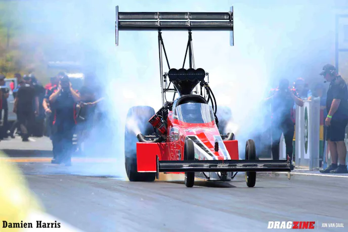 The event attracted six top fuel dragsters and five fuel funny cars (you must remember that the entire population of Australia is only as big as the great Los Angeles area). While the event was short on quantity, it excelled in quality. Going into the event driver, Wayne Newby held a slight lead in the Top Fuel championship over fellow Rapisarda Autosport International team mate and existing champion, Damien Harris. In Fuel Funny Car, Morice McMillan held the lead over Rocket Industries teammate, Josh Leahy. By the end of the day, both points leaders would be crowned as the 2025 champions.