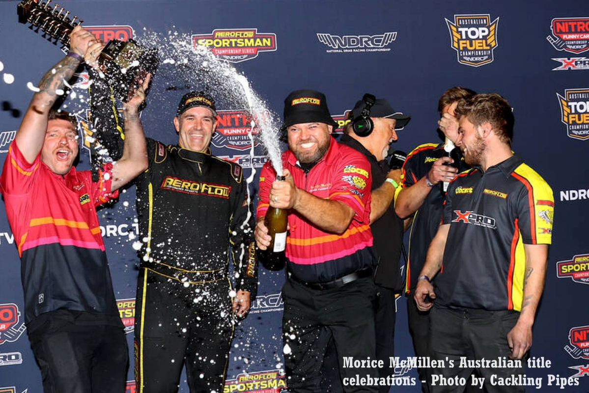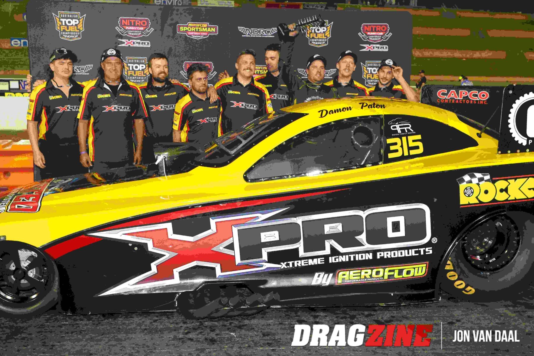 Backing up the Nitro show were 110 hand-picked sportsman racers from all over Australia. When all was said and done, victories went to Mitchell Oxley in Super Comp, over runner-up Kit Hunter. Wally Hosta won in Performance Bike, over runner-up Ken Collin. Cory Dyson took the gold in Modified from runner-up Jess Turner. Super Sedan had Michael Vlasakakis snatch victory over runner-up Sean Maher. In Super Street, Tex Griffiths turned back runner-up Richard Matosevic, while Sean Rickets rode to a win in Modified Bike over runner-up Mitchell Woodford.