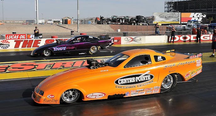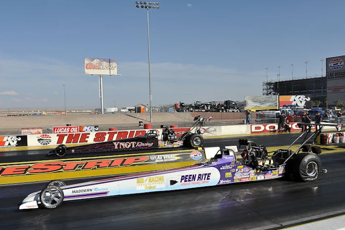 In the Top Alcohol Dragster final, Demke’s Peen Rite dragster had a slight lead at the 1,000-foot mark, but the outcome was too close to call, so a rerun is scheduled to be held in conjunction with qualifying for the national event at Las Vegas this weekend.