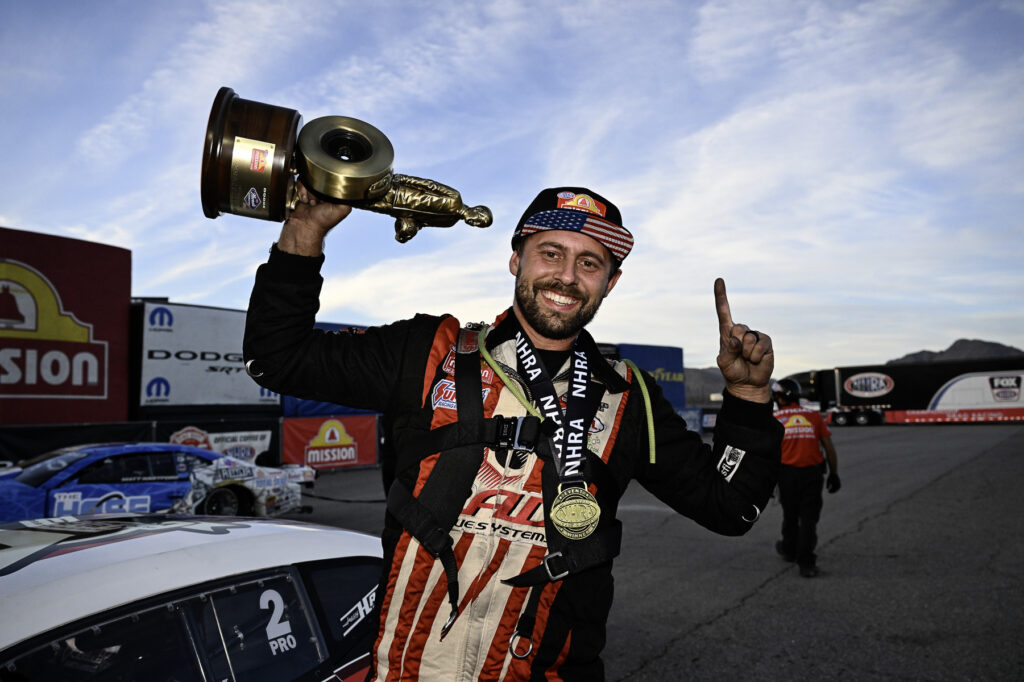 In Pro Stock, Dallas Glenn delivered a near-flawless weekend in his RAD Torque Systems Camaro, taking down Matt Hartford in the final with a 6.602 at 206.61 mph. Glenn’s eighth win of the season and third in Las Vegas puts him 92 points ahead of Greg Anderson with one race to go.