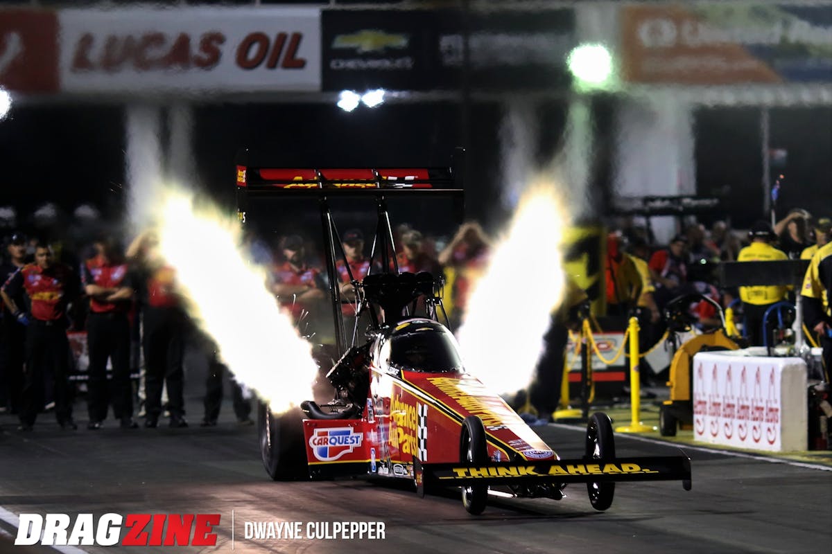 Top Fuel — Steve Torrence, 3.863 seconds, 320.20 mph def. Brittany Force, 3.989 seconds, 274.00 mph.