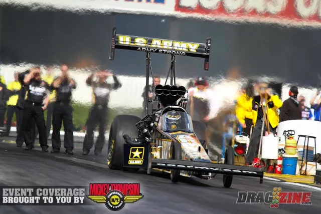 “We know how run down this race track, same crew chief, same guys,” said the driver of the U.S. Army dragster who had been shut out at Heartland Park Topeka before winning in 2010. “In reality, it’s Topeka, it’s a great place, the air was perfect and, uh…we’re No. 1.”
