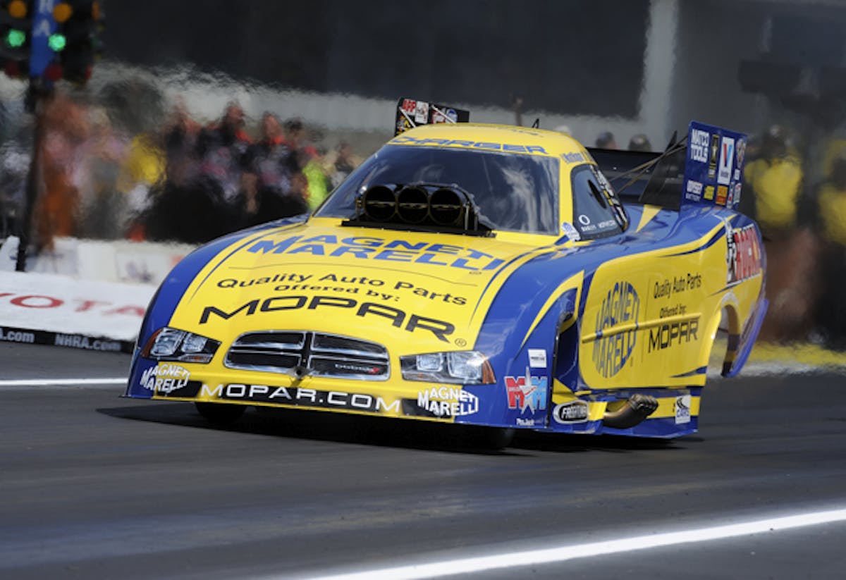 TOUGH TEAMMATES – Magneti-Marelli/Rocky Footwear Dodge driver Matt Hagan beat Don Schumacher Racing Funny Car mate Jack Beckman in the final round (4.112 seconds at 308-mph to Beckman’s 4.182, 303.98). But Hagan talked more about his Round 2 holeshot victory over another teammate, Johnny Gray. Hagan replaced Gray as the points leader and has a 44-point advantage. After that match-up, Hagan said, “That’s pressure right there. You’re racing the points leader. The guy just won three races, and he has the opportunity if he beats us to kind of run away with this thing.