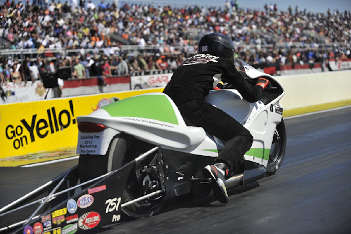 099-MichaelRayENGSundayRay is making a habit out of upsetting the status quo after interrupting the Vance & Hines streak last September at Dallas. This Englishtown coup marked his second career victory. “Our performance is a testament to the hard work [team owner George Bryce, crew chief Ken Johnson, and the crew] put in over the past 24 months, building this team [and] to how we’re going to run in the summer months and continue to improve . . . when it does count for the Countdown,” Ray said.