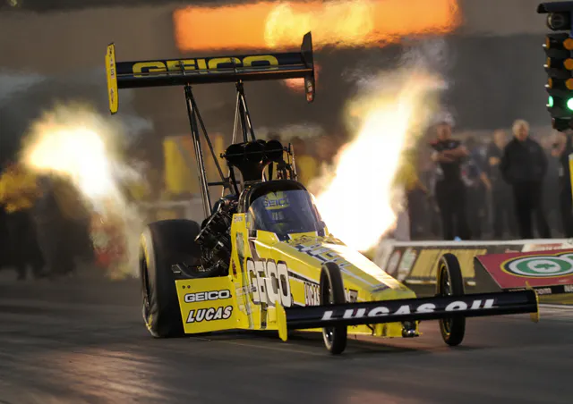 Don Schumacher Racing missed the chance to score a double top-qualifying effort in the sport’s two nitromethane-fueled classes by one-thousandth of a second. That’s how much quicker Lucas was in his GEICO/Lucas Oil Dragster than Tony Schumacher, Friday’s provisional leader. Lucas dominated the dragster class with his 3.737-second, 322.19-mph blast that capped a flurry of track-record runs in the final qualifying session. Spencer Massey, Doug Kalitta, Clay Millican and Bob Vandergriff all had at least a few moments of record-holding glory in the final day of qualifying.