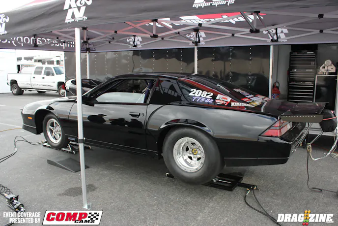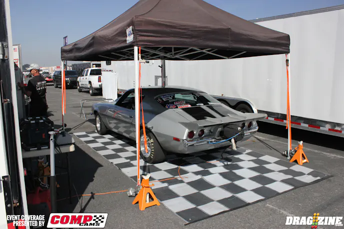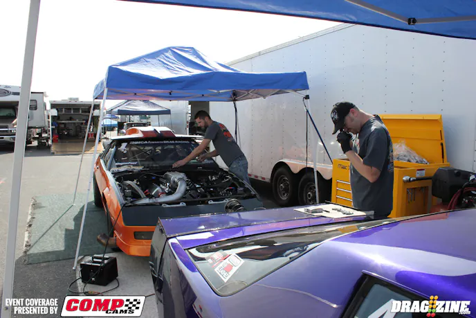 Bert Heck’s 3rd-gen Camaro gets the once-over on Sunday, as he got ready to prove his mettle once more in the True Ten Five Class. His nitrous-equipped ride went all out against some heavy competition from Modular Mustang Racing’s Mark Luten and his turbocharged Mustang, but Heck was eventually eliminated by Luten and his big Grabber Blue monster.