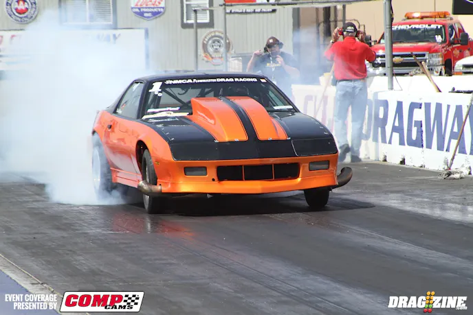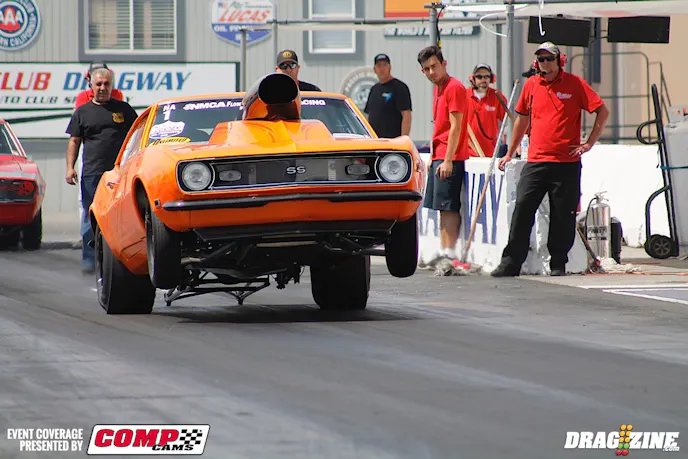 Though he had in previous NMCA races had issues with his nitrous controller, Eric Carlstedt (left) was able to get it under control and run a normal amount to his 427-equipped Camaro. Carlstedt had himself a fairly good weekend, eventually making it to the semifinals.