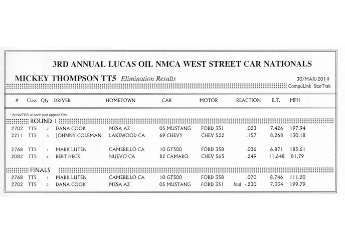 A big redlight start in the finals cost Dana Cook the chance to contest Mark Luten's victory.