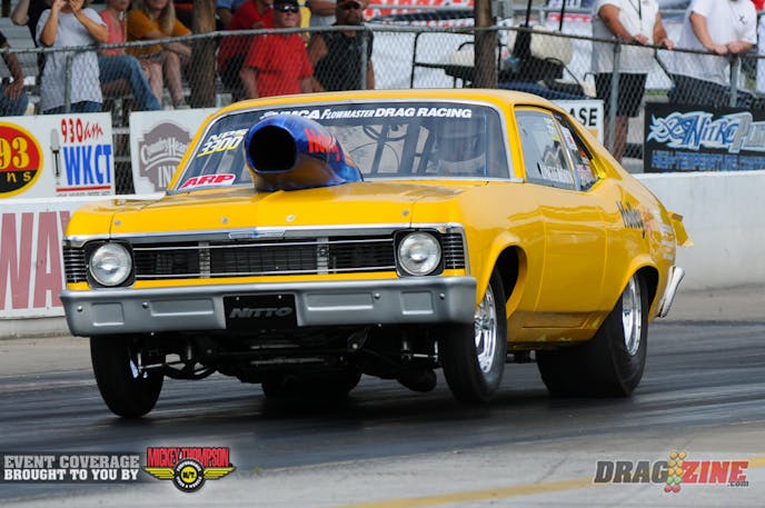 Like in Joliet, Jim Widener (left) isn't the quickest car in Pro Street, but it's certainly consistent. In the final sessio, Widener cruised to a 6.12, his best run of the weekend to close out qualifying third in the order. Former Xtreme Street racer Danny Shemwell, competing in Nostalgia Pro Street this weekend with a very sharp '69 Camaro powered by a 525-inch, nitrous-fed big block, enters eliminations at No. 5 with his game 7.42 best.