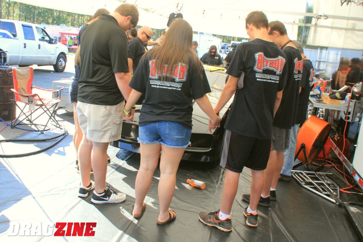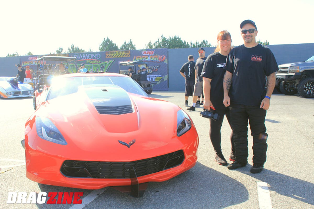 “I was driving it and got to the eighth mile and a bunch of smoke came out of the front and I lost the steering and was just along for the ride. I pulled the chutes, it kissed both walls and I soon as it stopped fire came out as I was pulling the steering wheel off , undid the buckle and going out the window and the fire just went out, just disappeared, the Lord protected me. You gotta praise Him in the good and the bad. It's such an honor to be here and all the people showing the love. I'm standing beside and and I'm fine, I'm truly blessed to walk away from it” Leroy Nabors David Reese has a two car team here in the Carolina No Time with his El Diablo and Timmy Miessner’s Blown Money Mustang. Miessner lost an engine shaking the car down here on Thursday and missed a session yesterday but is in round two of the shootout after swapping in a new unit. El Diablo is a joint effort with Phil Shuler after Leroy Nabors purchased his Corvette and the Camaro was built to run 28’s or 275’s so the team would have a car in two classes. He has five final round appearances so far with El Diablo so their program is off to a good start.Remlap, Alabama based Paul Gargus is running Limited Drag Radial with his 1969 Camaro using a Chris Terry Racing Engines 565 Chevy and twin 88 MM turbochargers from Garrett. Terry also did the turbo piping and installation fabrication as well as a fresh back half on the car. Gargus is racing the LDR series and has four events under his belt so far wit a best ET of 4.23. “We qualified with a 4.27 but have been fighting wheelies here this weekend. We won the St Louis PSCA event had a runner up at Ohio Valley and got put out second round when we debut the car at Huntsville.” – Paul Gargus. The crew from left to right Scott Tidwell, Tim Fuller, Paul and Angela Gargus, Chris Jebeles and Tim Hart.Daniel Pharris is here piloting two cars this weekend, the Aleppa Racing Corvette and the Lexus in Limited Drag Radial where he is qualified number one. He is racing the points series for LDR and is just a few back from points leader Shane Stack. Goals for this weekend is to come away with a win here and move into the points lead for the final event at Radial Fest in October. “ The Vette’s been good, we qualified tenth with a 3.84, it’s a tough field and tough conditions. We have Alex Laughlin second round, he went a .78 in the heat and they probably will wick it up so it will be tough for sure. We gotta play it safe and race the race track and hope for the best” – Daniel PharrisAlex Laughlin’s Vette recieves major sponsor from Speed Society with support from Fitzgerald USA and Technet, and Hot Wheels Car Care Products. “So far our weekend has been great, every single time we have been down the track we have improved even if conditions were worse and worse. In E1 we ran a .378, second fastest for the session so things are good.” Laughlin would earn the round win over Pharris with a 3.79 at 197 with Pharris striking the tires.Upsets have been the order of the day with several top contender out in upsets. Marty Stinnett took a loos in a close race with Bryan Markewicz out of Largo, Florida scooting around Stinnet who fell off pace to a 3.96 at 171, Markiewicz’s 3.89 at 203 in round two.