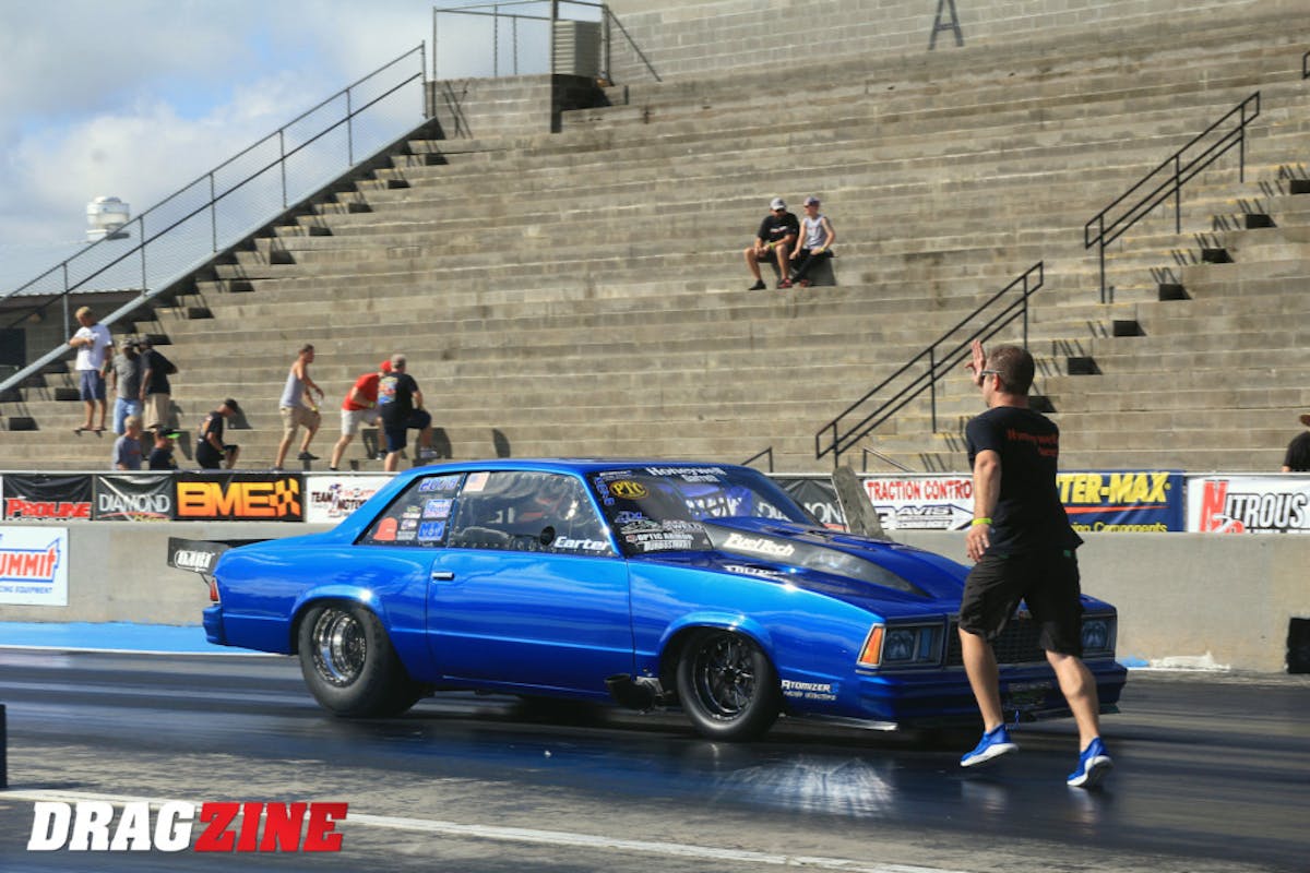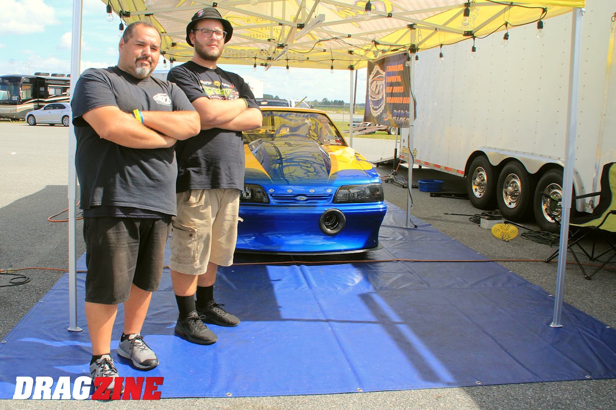 Eric Tillman is running his 1965 Chevy II in Outlaw 632 after purchasing just three months ago. It's powered by a small block Chevy topped with an Inductions Solutions plate system and a 4105 Pro Systems carburetor. Tillman hails from Moultry, Georgia and is here with his family and friends to race and have a good time East Islip, New York’s John Cipolla runs X275 with his 1989 Mustang built at BP Racing in Babylon, NY with a BES big Chevy backed by a Pro Torque converter and Rossler 2 speed TH 400 transmission. John managed a 4.53 at 156 last night and swapped the stator out after the session. This morning he sent the shocks to Menscer to get tuned up and will be looking for some 4.40’s in the next session. He has had this car about four years starting out in Ultra Street before making the switch to X275 two years ago.