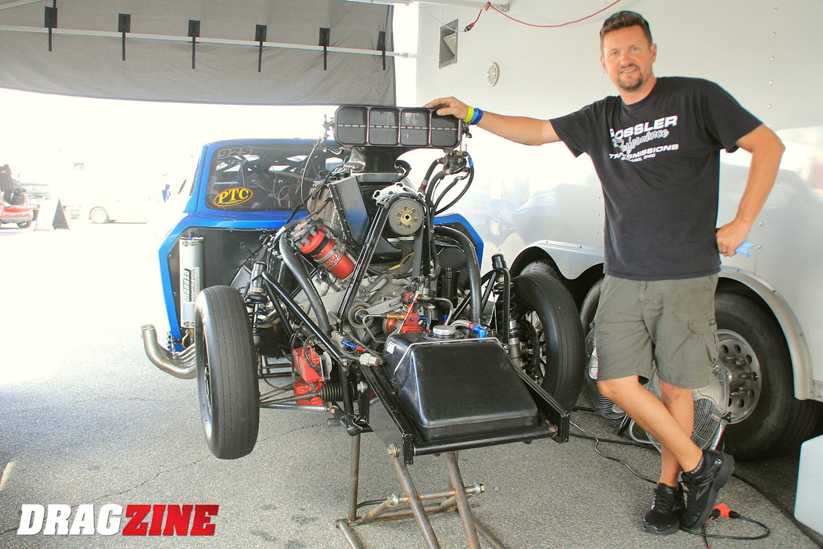 John Keesey suffered some engine damage at the Ohio Valley Prize Fight disrupting his plans to attend the Yellow Bullet Nationals but made it here and finished assembling the car on site. KBX’s Justin McChensey does the tuning with the engine from the KBX team but the car was built by Keesey at his Airport Automotive shop. It’s fed by a Forced Inductions turbo and backed by an ATF Speed trans and converter. The car is the fastest hi port headed engine running 4.36 at a best ET last year in Memphis.