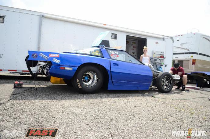 Dayton, Ohio's Travis Esselman has one of the more eye-catching rides, a C4 Corvette built by Steve Bruce Race Cars, that's running in Limited Drag Radial. Esselman is running a 540-inch big-block with twin 88mm turbos. The Prize Fight marks only the second outing on the newly-built car. Jacky McCarty, the defending champion of the Prize Fight in X275, is back for another winners’ belt this year. McCarty, still in NMCA Street Outlaw trim, unloaded right off the trailer with a 1.16 – 4.41 pass, and then swapped turbochargers and added weight to get in X trim, going a 4.55 in the mid-day 85-degree heat.