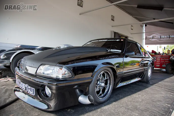 Virginia's Nick Yarber hasn't had much success so far this weekend with his Pro Line 481X-powered Mustang, currently anchoring the Limited Drag Radial field with a 5.66 best.