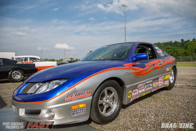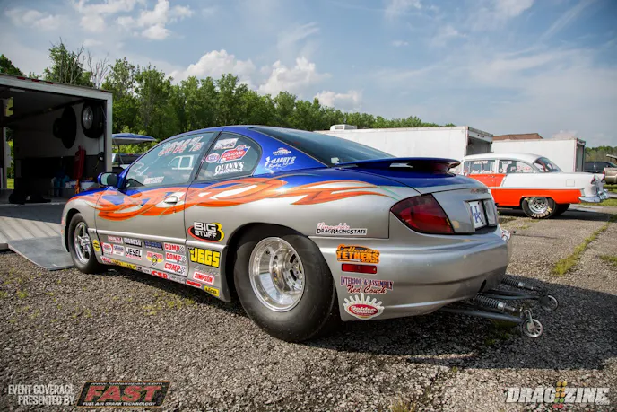 One of the things you usually don’t see at an Outlaw-style heads-up race is a full blown NHRA class car, but Matt Alvey, brought out his 2006 Super Stock Pontiac Sunfire to make some hits. Matt is a lifelong racer and gearhead that has spent many years running in the Super Stock ranks with different cars and loves the competitive nature of the class.