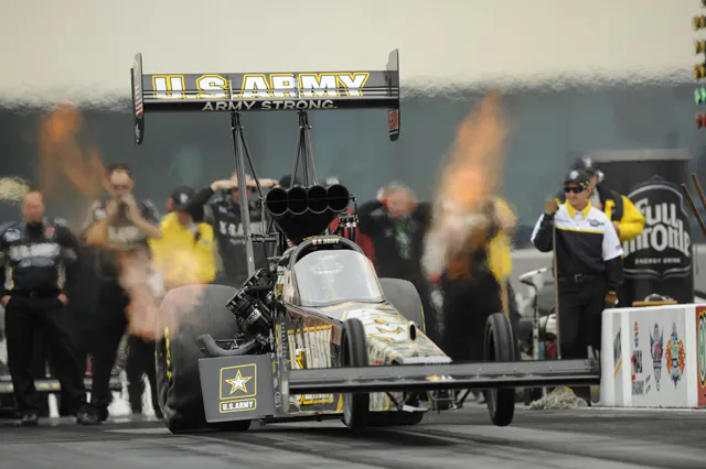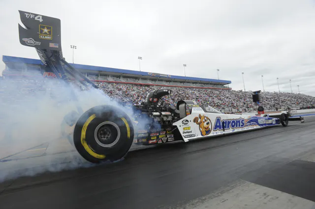 Brown’s Don Schumacher Racing teammate Schumacher set the national record for speed when he drove his U.S. Army dragster to a 327.90 pass, while Brown’s other teammate and runner-up finisher Massey took over the second spot in the points standings, just 16 points behind Brown.