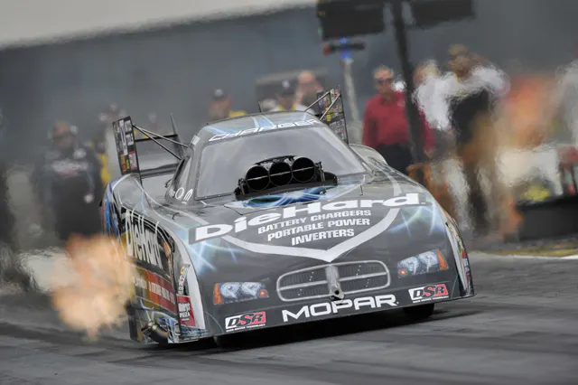 Hagan began his week of domination Friday night when he became the first Funny Car driver in NHRA history to make a three-second run. After taking the No. 1 qualifier with a 3.995-second run, Hagan then backed up that pass with a first round win Sunday at 4.018 seconds to secure the national record and the 20 bonus points that come with it. Hagan then powered his Die Hard Dodge Charger past points leader Mike Neff in the final round with a run of 4.130 seconds at 301.07 mph to secure his fourth career win and move up to the second spot in the point standings, just 22 points behind Neff.