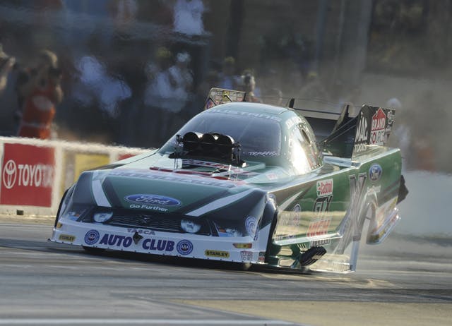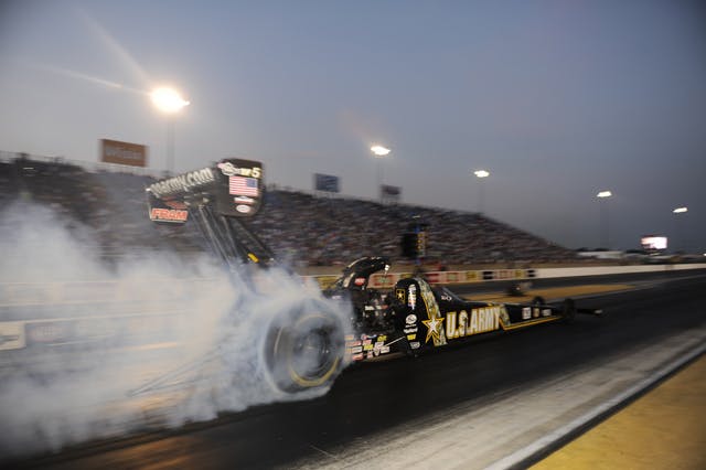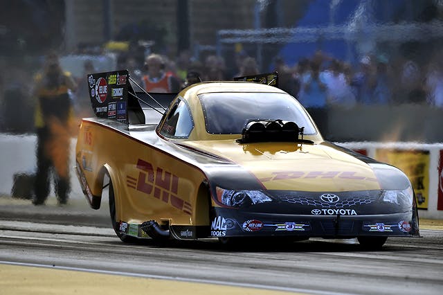 Veteran driver Arend claimed his first Funny Car win of the season and fourth of his career by defeating rookie Courtney Force in the final round. Arend powered to a performance of 4.131 at 309.20 in his DHL Toyota Camry to hold off the 24-year-old Force, who finished in 4.454 at 272.67 in her Traxxas Ford Mustang.