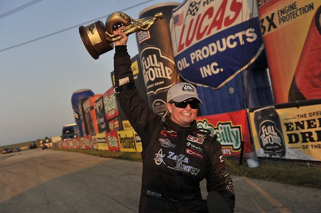 “It’s awesome,” said Enders, who becomes the 12th female to win an NHRA pro category race. “I think that if I could have planned it, I would have asked to run Greg in the final. You know that he made it very clear that he didn’t want to lose to me. He’s a very competitive guy and I love him to death, but I couldn’t wait to beat him. I’m glad [the win] came here in Chicago. I had my first final in Pro Stock here in 2005, and so it was nice to circle back around and get it done here.