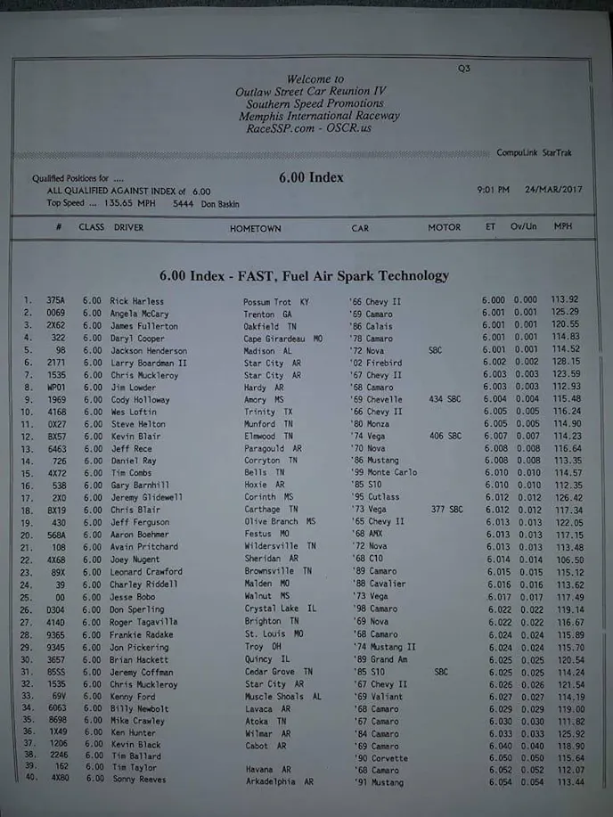 It’s day two of the Outlaw Street Car Reunion IV at Memphis International Raceway. We are currently in a rain delay situation and will hopefully be racing again soon.