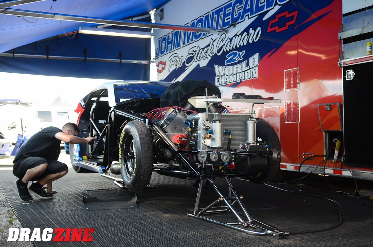 Extreme Pro Stock racer John Montecalvo is debuting a brand new 2017 Chevrolet Camaro out of the Jerry Haas Race Cars shop this weekend. Crew chief Tommy Lee has been burning the midnight oil to get the car prepared, and it paid off with a 4.21 at 171 mph right off the trailer yesterday on the very cars' very first hit.