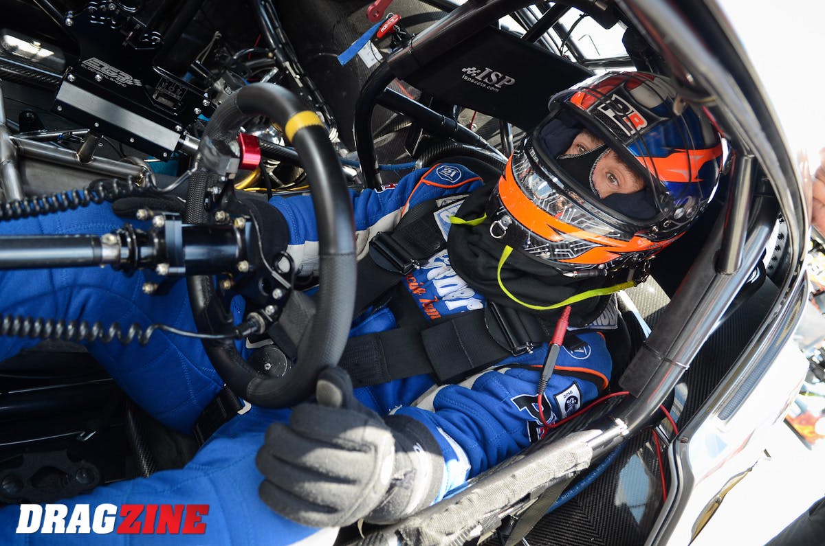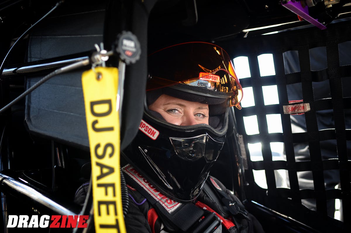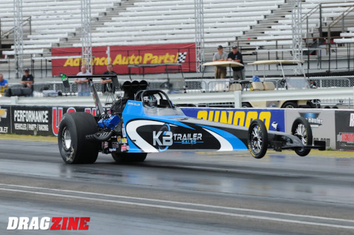 Midwest Top Dragster standout Kathy Fisher continued her recent hot streak with final-round win in the “Dragoness” ’15 American dragster. Her ProCharged entry was ready for a race, but she won the final at the starting line when opponent Matt Cooke left too soon. Both drivers coasted down the track shortly after launching off the starting line. Fisher defeated Jimmy Sackuvich, EmiLee Novak and Robert Pickens prior to the final. Cooke’s previous opponents were Matt Sackman, Angie Travis and Chaz Silance.