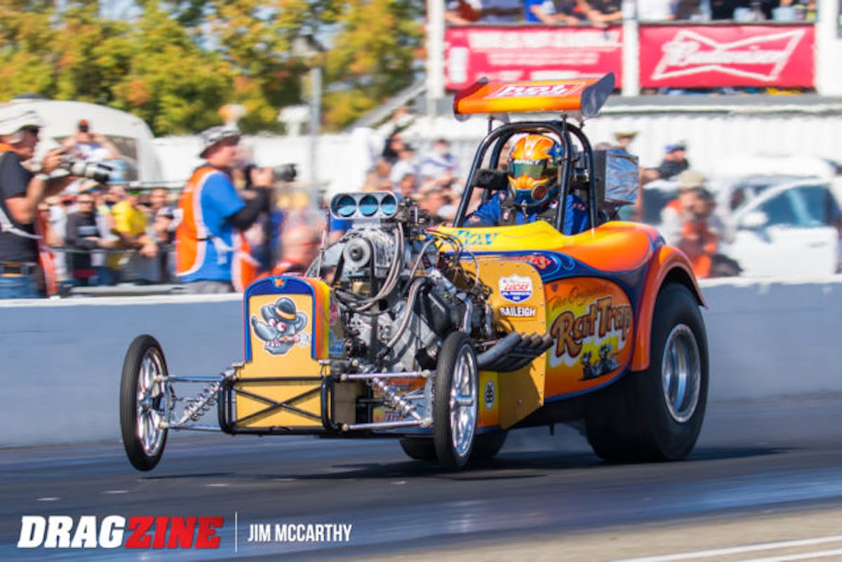 Jim Young piloted his Young Guns dragster to a 6.310-second pass at 137.86 mph in the Nostalgia Top Fuel Final. Young ran the final uncontested after Jim Murphy was unable to make repairs to his WW2 dragster to make the final round.
