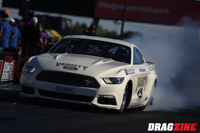 Following nearly two years of buildup, Factory X made its triumphant debut on the sport’s grandest stage Friday evening at the “Big Go” at Lucas Oil Indianapolis Raceway Park, with four cars — the Chevrolet’s of Stanfield and veteran Comp racer and chassis builder Jim Cowan, Geoff Turk’s Dodge Challenger driven by Pro Stock champion Allen Johnson, and Holbrook’s Ford.