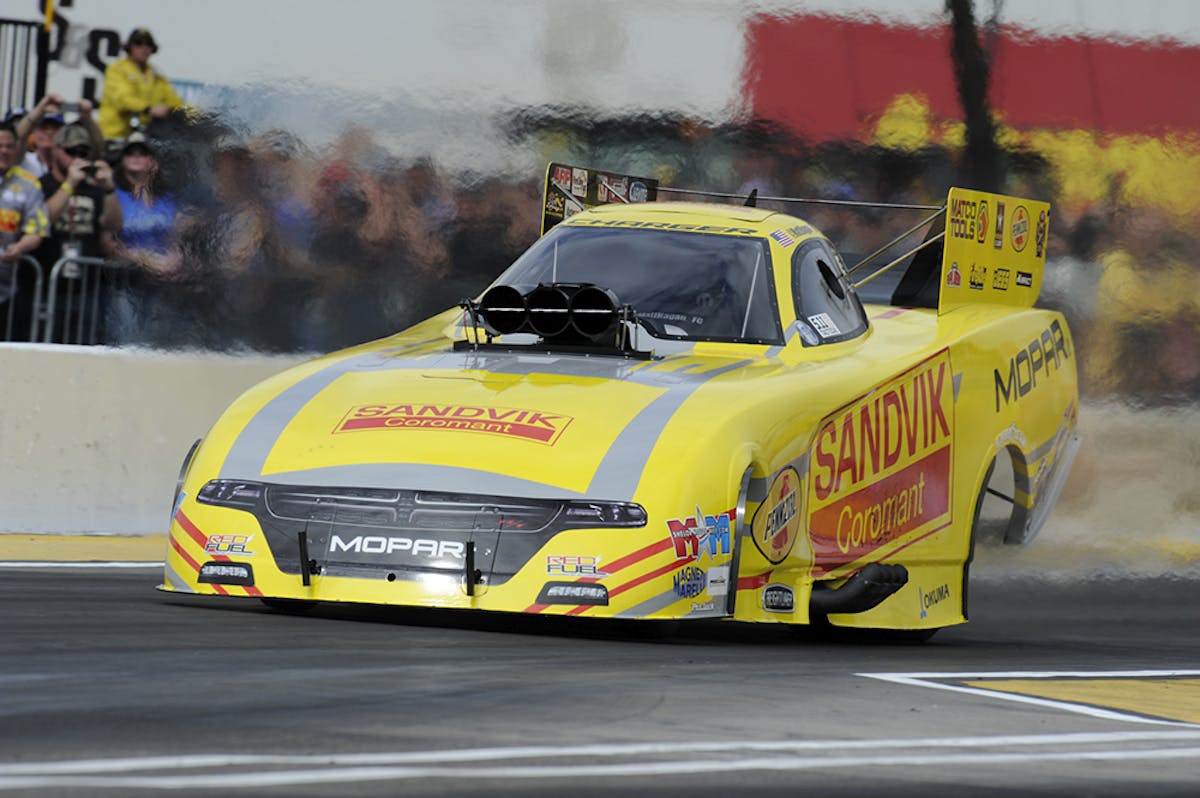Hagan won his second consecutive Funny Car race to remain undefeated in the 2017 season. Hagan’s 3.878 at 330.88 in his Sandvik Coromat Dodge Charger R/T bettered reigning world champion Ron Capps’ 3.883 at 330.88 in the NAPA Auto Parts Dodge Charger R/T.
