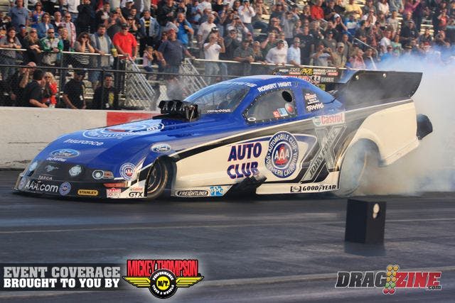 Robert Hight was paired with teammate Courtney Force in a great side by side matchup. His 4.021 @ 318.24 put him second quick and showed the consistancy of the John Force Racing team based out of Yorba Linda, California. Image/s missing.
