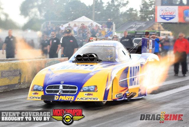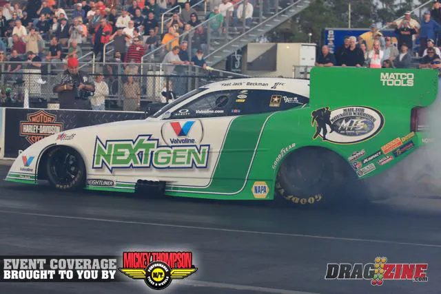 John Force was the last Funny Car down and put up a 4.053 @ 308.35 MPH run taking third spot and putting John Force Racing in the top three spots in Funny Car.