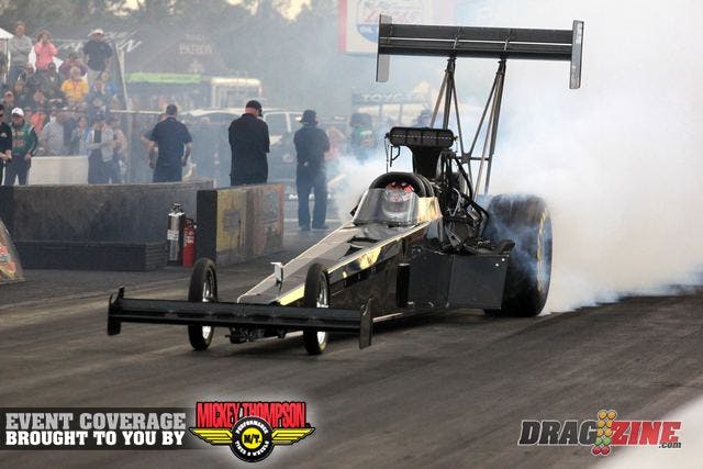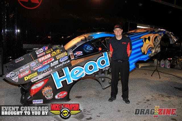 Top Fuel rookie Chad Head put down a good 4.074 @ 313.51MPH pass moving over towards the wall on the top end and did a nice job getting it back to the center and getting shut down safely. That run was good for fifth in the final session of the night.