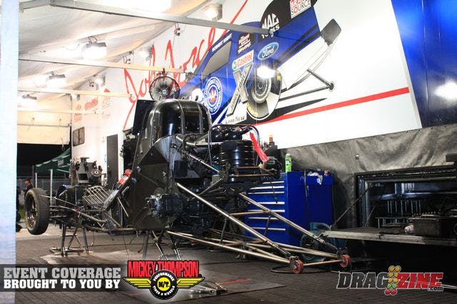 Fans often crowd around as the various teams warm up the cars but soon scatter as the nitro fumes are too much for most everyone without a mask. Brittany Force was fourth quick in the second session with a good 3.796 @ 324.36 MPH while paired with Clay Millican.