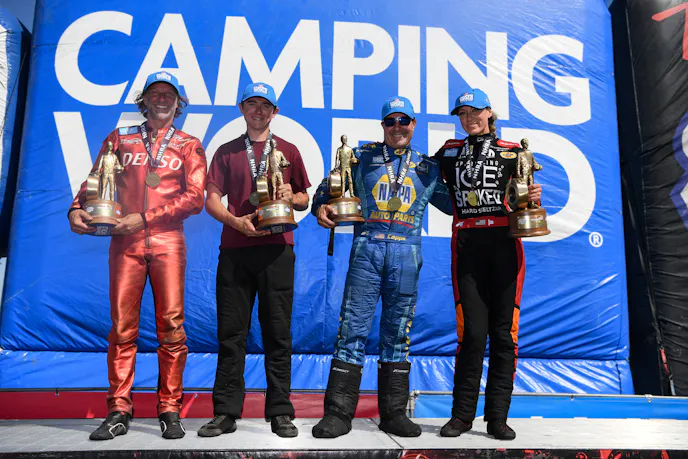 “This is about the perseverance of this team,” said Pruett, who moved to fourth in Top Fuel points on Sunday. “We’ve had a lot of dedication and to do this at our home track, it’s phenomenal. Thank you to everyone who has stuck with us and we dug deep. It’s been a long time since I’ve seen a Wally and today has just been incredible. We’re going to enjoy this.”