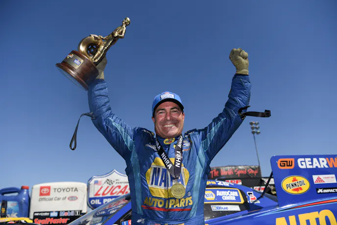 Capps, who also qualified No. 1 this weekend, grabbed his first win of the year by going 4.151-seconds at 297.75 mph in the final round against J.R. Todd in his 11,000-horsepower NAPA Auto Parts Dodge Charger SRT Hellcat. It is the 67th career win for the former Funny Car world champ and also gave him the points lead. Capps conquered the rigorous conditions at Pomona on Sunday, knocking off Bobby Bode, Bob Tasca III, who held the points lead going into Sunday, and longtime rival John Force to reach the final round. He quickly tracked down Todd in the finals, celebrating a meaningful win at his home track.