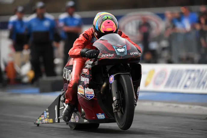 Smith continued to stay a step ahead of everyone in Pro Stock Motorcycle, picking up his fourth win this season on his Denso Auto Parts/Stockseth/Matt Smith Racing EBR after a pass of 6.828 at 199.52 in the final round against Angelle Sampey. Smith was the No. 1 qualifier by a wide margin and rolled through the field on Sunday, earning round wins against his wife, Angie, and teammate Scotty Pollacheck before cruising to the win against Sampey. He maintained his healthy lead in the points standings and picked up his second win on the Western Swing as well.