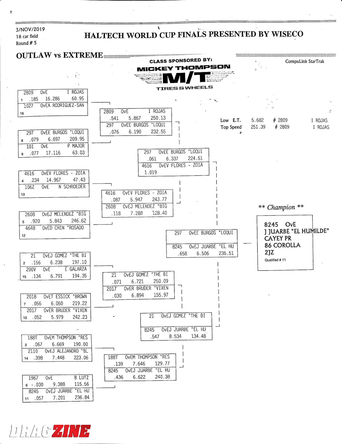 Outlaw vs Extreme looked to be Isaias Rojas’ to win since he had the field covered by almost two full tenths, but it wasn’t meant to be. During the second round of eliminations, he was taken down by Edward Burgos due to a .541 reaction time. Burgos marched on to the finals where he met up with another underdog Jorge Juarbe. High drama began in the burnout box as Juarbe waited for Burgos rotary-powered RX8 to start and he even opted to give him extra time so they could race for the $30,000 prize. Ultimately Burgos wasn’t able to get the car started and Juarbe made a single pass to take the win.